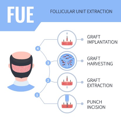 Diese Transplantate werden aus dem hinteren und/oder lateralen Bereich der Kopfhaut (Spenderbereich) unter örtlicher Betäubung entnommen und sorgfältig unter einem Mikroskop vorbereitet und dann vorsichtig mit Mikroschnitten in die kahlen oder alopezischen Bereiche gelegt. Die Follikel werden nacheinander aus dem Spenderbereich entfernt, ohne dass Stiche und ohne auffällige Markierungen erforderlich sind, und der Ort, an dem sie entfernt werden, ist nicht wahrnehmbar. Diese Follikeleinheiten, die aus 1, 2, 3 oder 4 Haaren bestehen, werden entfernt, begleitet von peripholikulären Strukturen.